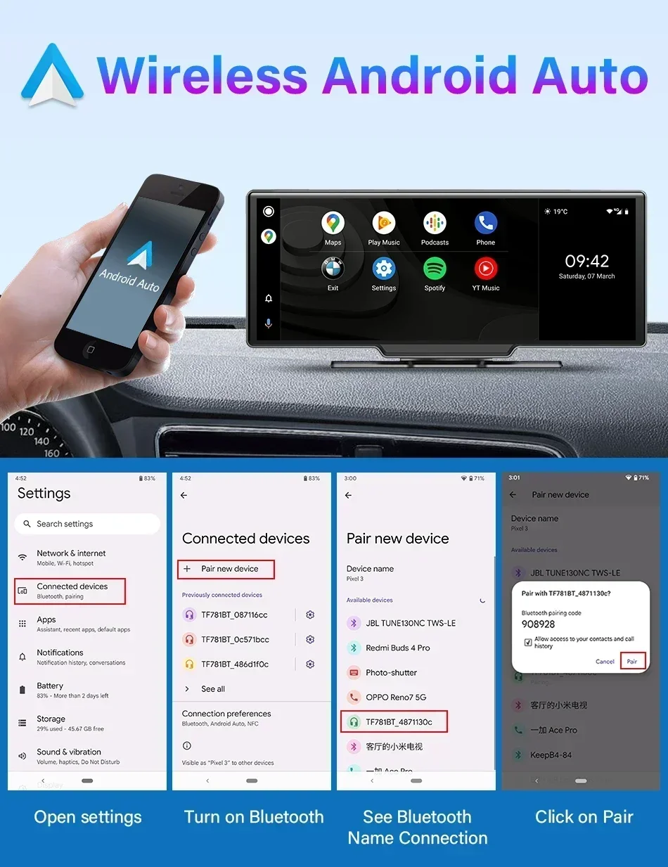 Avec Carplay sans fil et Android Auto, vous pouvez facilement connecter votre téléphone au système audio de votre voiture et profiter d'une intégration transparente.