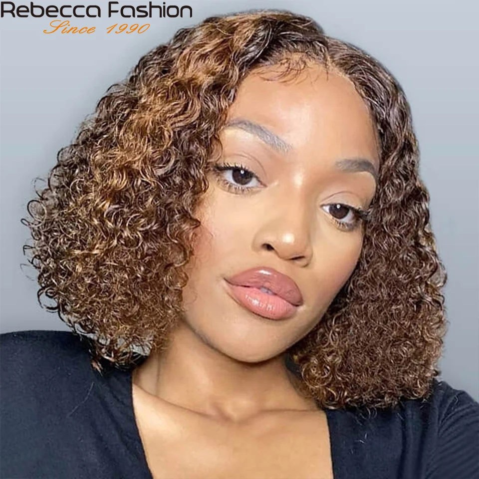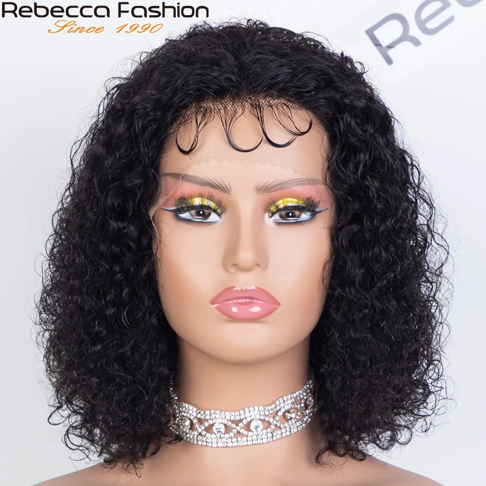 Perruque Bob Lace Front Wig brésilienne naturelle bouclée, cheveux caution crépus, coupe courte, 180D, pour femmes